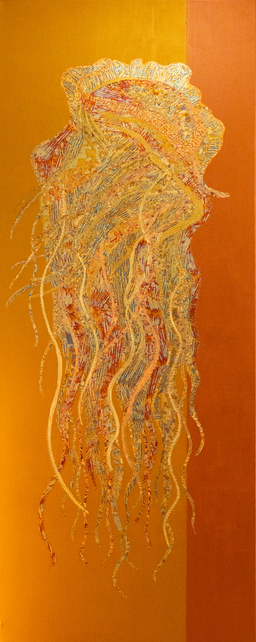 acrylic and metal collage on canvas